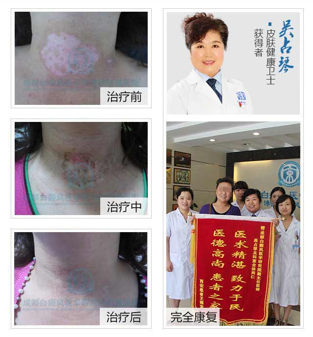 吴占琴主任提醒:白癜风的危害必须引起社会女性的重视白,任其发展,后果将会非常严重,患者一定要及早到正规、专业医院治疗。成都博润白癜风医院以“分型分诊、多维治疗”诊疗模式,将治疗规范化、科学化、专业化、正规化。并能中西结合、内调外治,做到一人一方、个性化治疗,为患者摆脱白癜风的困扰。