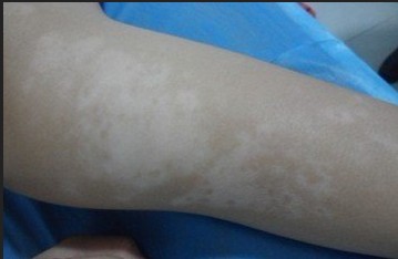 (3)白斑对日光比较敏感,稍晒即发红。