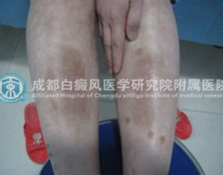 (治疗前,殷女士双腿白斑明显,色素脱失严重)