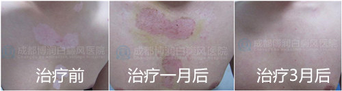 主诉:胸前白斑1年余,曾于外院医院治疗,效果不佳,白斑继续扩散,今日特来我院就诊