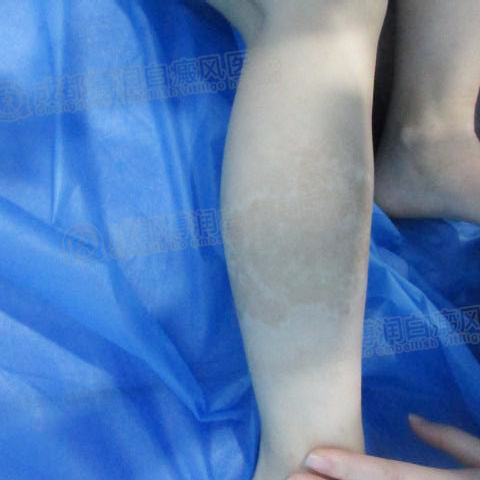 现病史:患者诉4年前发现左下肢白斑,曾西部白癜风医院检查治疗,口服:不详,外用:不详,效果不佳,于今日来院就诊。