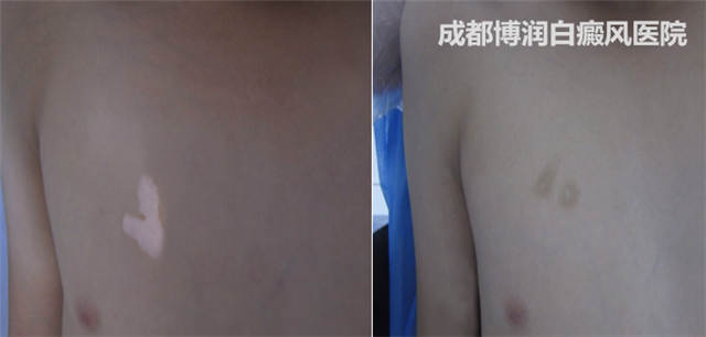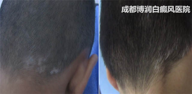小军妈妈:现在娃儿这个病慢慢好转了,脸上、心口(胸)上、背上这些都没有了,就还有头上还有这么大一块慢慢地都恢复了,很满意。小军是2015年下半年来成都博润白癜风医院治疗的,也就是几个月的治疗,便处于康复中,这样的治疗结果,让小军的爸妈庆幸当初做出了正确的选择。