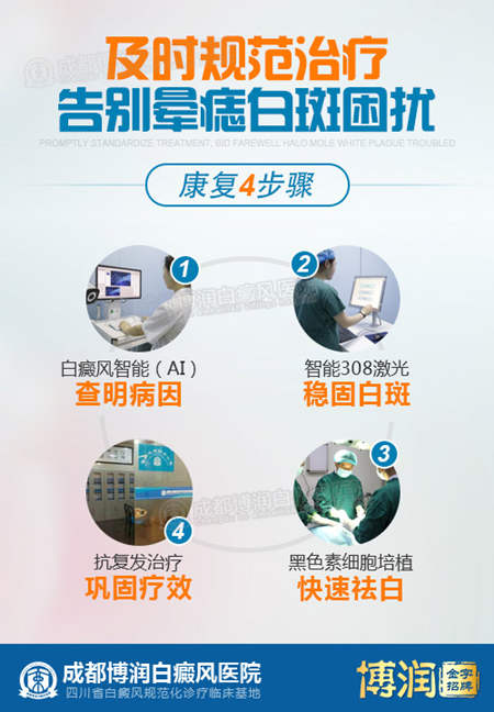 成都博润白癜风医院在治疗晕痣白斑患者方面有着丰富的临床经验。研究出中医治本、西医治标,结合光疗等的多维诊疗方法,在已接受治疗的患者的康复来看效果十分显著,并且经过后期愈后康复管理可避免再次复发,一次性祛除白斑烦恼。