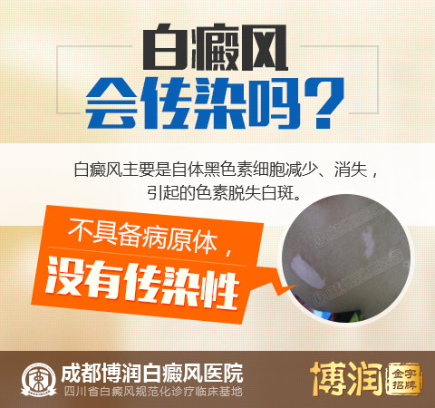 传染是病原体侵入人体后,病原体在人体内的一种寄生过程,也是一种相互作用和斗争的过程,构成传染的主要条件是病原体。而白癜风是由于局部皮肤黑色素代谢紊乱而引起的脱色性改变,不具备病原体,因而白白癜风没有传染性。