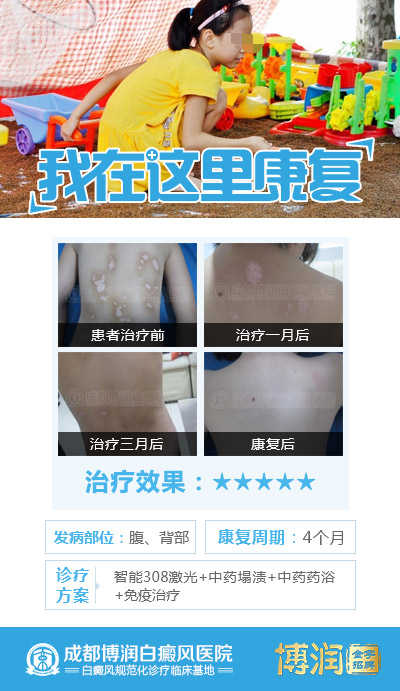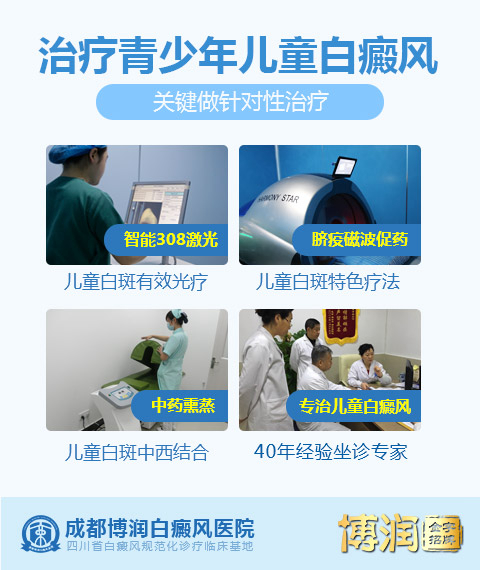 作为四川省治疗白癜风金字招牌,我院经过长期临床实践并根据儿童特殊的生理、心理特点,不同的病因进行针对性治疗,制定个性化治疗方案,对症施治,标本兼治。同时引进多项儿童治疗技术,如脐疗、智能308等,中西结合,内调外治,保障疗效,更保障孩子的身心健康。