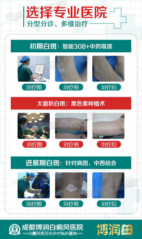 成都博润将继续以“专业研究白癜风,专业治疗白癜风”为己任,推广白癜风规范化诊疗,为更多患者带去康复,不负医院“金字招牌”、“规范化诊疗临床基地”的美誉!