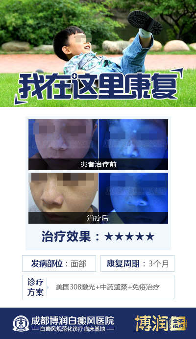 白癜风作为极易扩散的色素脱失性皮肤病,一旦在面部等皮肤暴露处发展,极为影响外貌,且暴露部位白斑更易受外部刺激扩散。爱美之心人皆有之,脸上的白斑更应重视,及时诊治,才能避免后遗症。