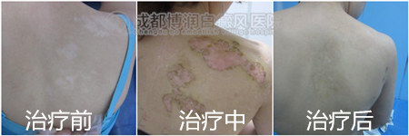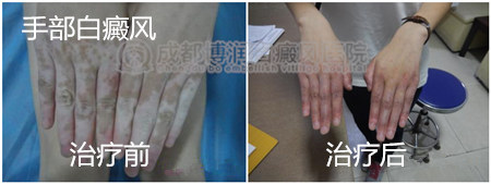 由上图可以看出,白癜风在经过有效治疗后,白斑外观变化明显,发红、内缩、边缘加深等等,在经过一系列的治疗措施后,患者的白斑能有效得到控制并康复。不过白癜风发展在各部位,不同的症状,其治疗手段不同,疗效也会有区别。