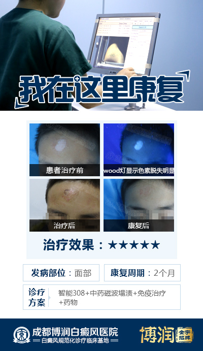 作为四川省白癜风规范化诊疗基地,成都博润白癜风医院在白癜风治疗上有着40多年的临床经验,专注于治疗白癜风。医院拥有以智能308为主的完整光疗系统和以Recell细胞再生术为核心的手术技术,此外还配合中药治疗,临床康复的患者数以千计。医院还设有抗复发中心,在疗程结束后为患者提供后续巩固治疗,将复发率降到最低,相对于一直反反复复的治疗,很大程度上减轻了患者的心理压力和经济负担,努力实现患者的“祛白梦”。