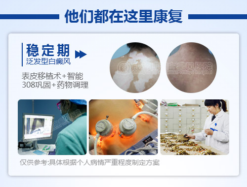 通常根据白癜风症状,我们会利用光疗、中药、手术、药物等技术,分型分诊,系统针对性治疗: