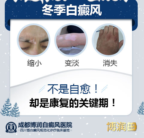 白癜风的发病跟季节有很大的关系。到了冬季,白癜风减慢了扩散的速度,大多开始进入稳定期,这并不是指白癜风自愈了。相反,对于白癜风来说,冬季是治疗白癜风的关键时期,甚至能有翻倍的疗效!
