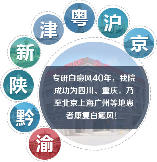作为西南地区"白癜风规范化诊疗临床基地",为每一位患者带来康复是我们最大的成就!我院致力于白癜风规范诊疗,利用中西结合技术,一人一方,综合针对性治疗,深入研究白癜风治疗新技术,为患者带来理想疗效,不断突破西南地区白癜风患者康复记录!