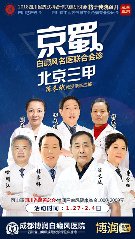 进入2018,为了给更多深陷疑难白癜风困扰的患者带去康复的希望,由四川省中医药信息学会色素专业委员会,白癜风临床科研中心发起的“四川省皮肤科合作共建研讨会——2000例白癜风外科临床案例分享会”,将于2018年2月2日在我院正式召开,邀请各地资深三甲名医,就我院2000例外科临床案例的大数据的论证,总结白癜风诊疗新思路,新成果,切实为患者优化临床疗效,提供更科学规范化的诊疗。