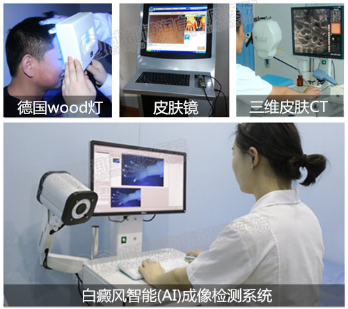 引起白斑的病症有多种,仅凭肉眼判断难以确诊,需借助仪器才能准确。随着科技的发展,白癜风的诊断技术也有多种,目前国内常见的就有伍德灯、皮肤镜(皮表透光显微镜)、 三维皮肤CT等,加上最新的智能(AI)成像检测系统,一步步升级白斑检查技术,逐步提高白癜风治疗的有效性。